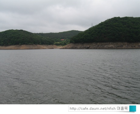 나는 모래와 돌무더기가 있는곳에 자리를 잡고 대를 펴본다. 모래가 있는 곳의 수심은 2.7칸대를 기준으로 1.5m내외이다. 그러나 돌무더기가 있는곳은 급격한 경사로서 2.3칸대를 기준으로 2.5m를 넘기고 있다.